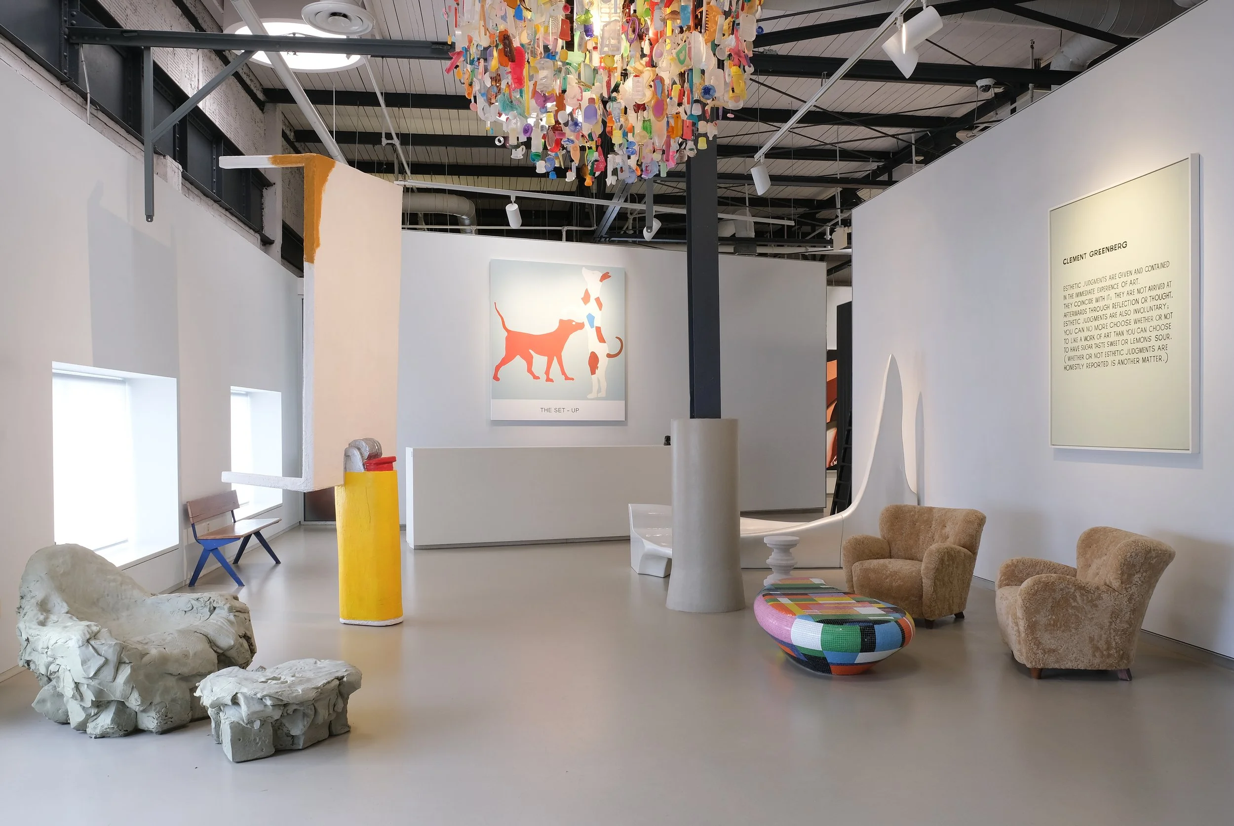 The Craig Robins Collection, exhibited within the Miami Design District headquarter offices of DACRA, is a private collection of contemporary art and design. Based on the belief that art should be shared, highlights from the collection are constantly rotated and put on view within the workspaces at DACRA, the innovative development company founded by Craig Robins in 1987. The annual re-hanging of Craig Robins’ contemporary art collection highlights 45 artworks by celebrated American conceptual artist John Baldessari (1931-2020), including highlights John Baldessari Clement Greenberg 1966-1968 and John Baldessari Kissing series: Simone Palm Trees (Near), 1975, The collection also features recent acquisitions including work by Kenturah Davis, Sayre Gomez, Urs Fisher, and more. Encompassing the disciplines of design, art, and architecture, the multifaceted collection also features pieces by established favorites such as Zaha Hadid, Jean Prouvé, Richard Tuttle, and Marlene Dumas.