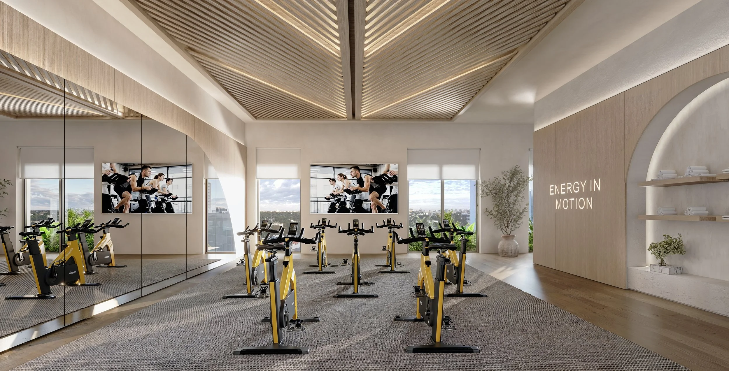 State-of-the-Art Fitness Center & Cycling studio – outfitted with premium Technogym cardio and strength equipment, including bikes for group classes and private lessons.