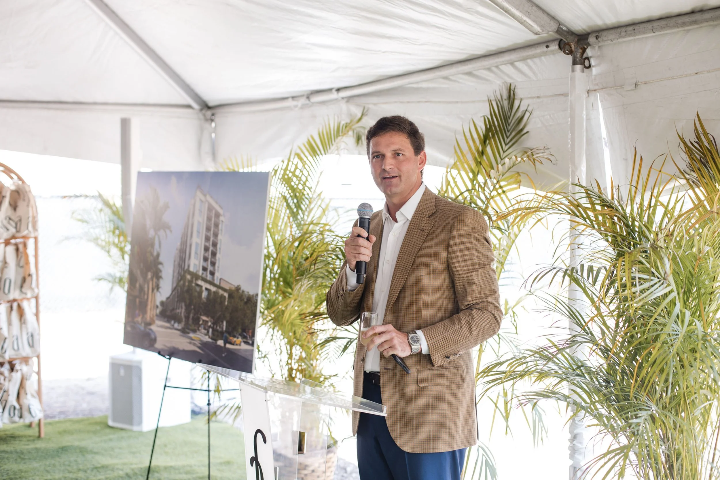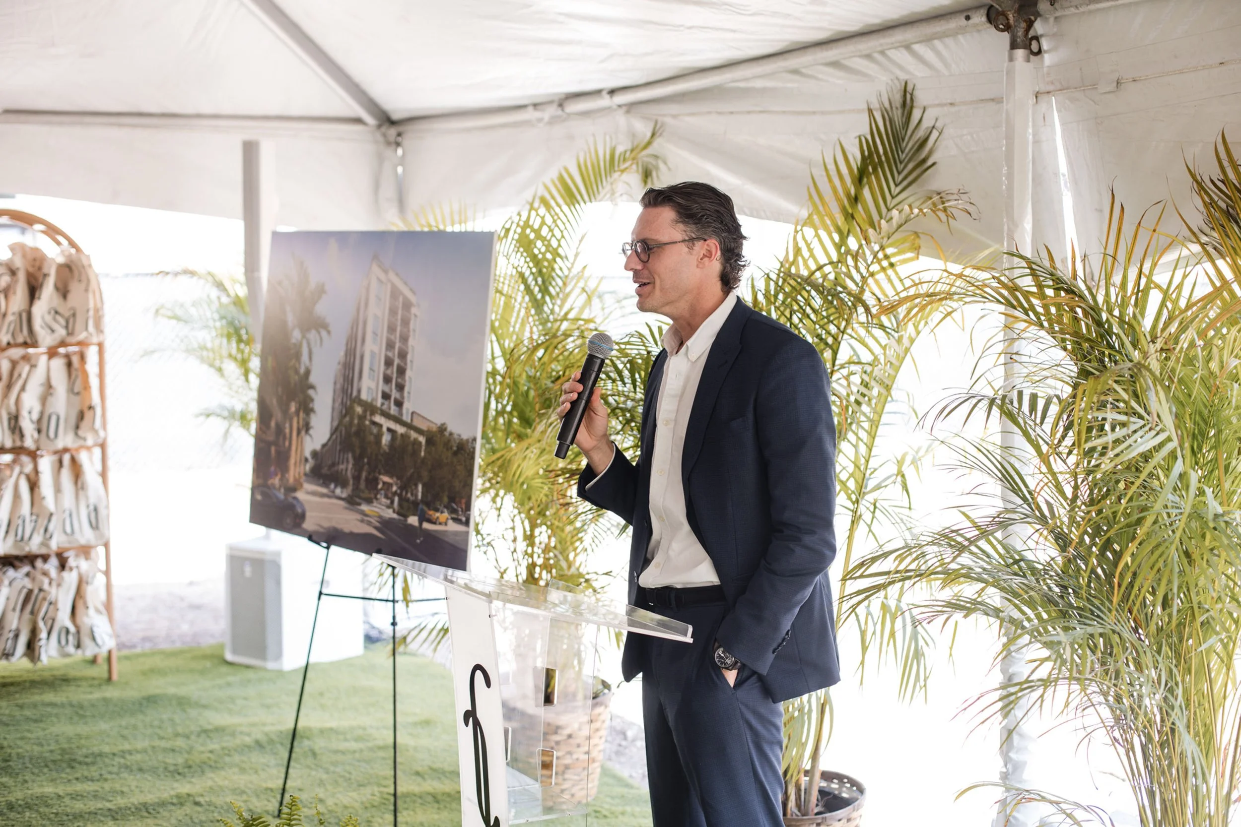 Local municipal leaders as well as key members of the design and construction team who spoke to guests at the event included Coral Gables Mayor Vince Lago; Constellation Group Managing Principal Eduardo Otaola; Jay Parker, CEO of Brokerage, Florida Region, and President of Douglas Elliman Development Marketing, Florida; and Arquitectonica Vice President Ray Fort.